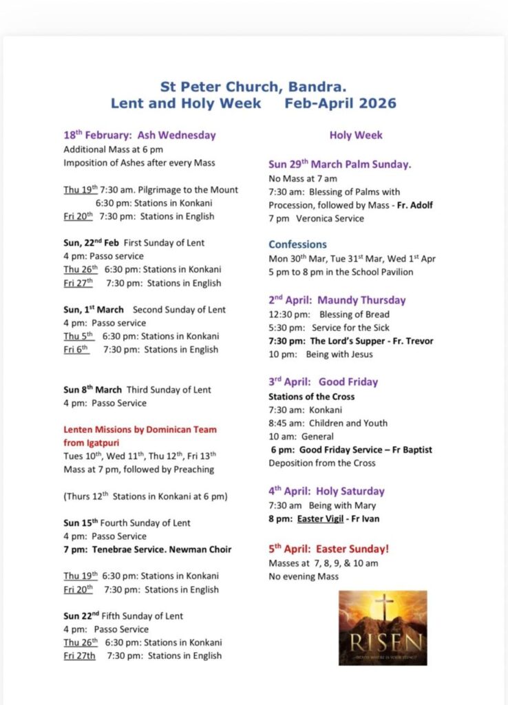 Lent – 2026 Post published:February 20, 2026 Post category:Events You Might Also Like Memorial Service for Fr. Stan Swamy SJ July 9, 2021 Keystone Newsletter – June-July 2025 June 2, 2025 Holy Week Schedule March 23, 2024
